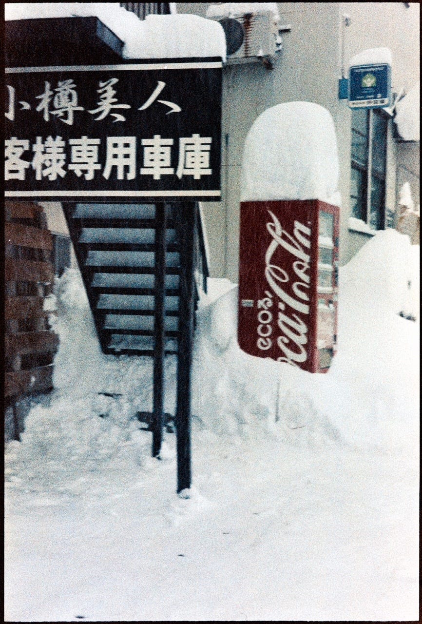 A common site in Otaru, Snow capped vending machines